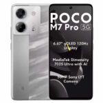 Seguindo a identidade visual da linha POCO, o M7 Pro apresenta um design moderno com um módulo de câmeras retangular proeminente. A construção é majoritariamente em plástico de alta qualidade, tanto na traseira quanto nas laterais, o que contribui para um peso contido de apenas 181 gramas. Apesar do material, a pegada é firme e o acabamento fosco ajuda a evitar marcas de dedo. O aparelho conta com certificação IP54, garantindo proteção contra respingos d’água e poeira.